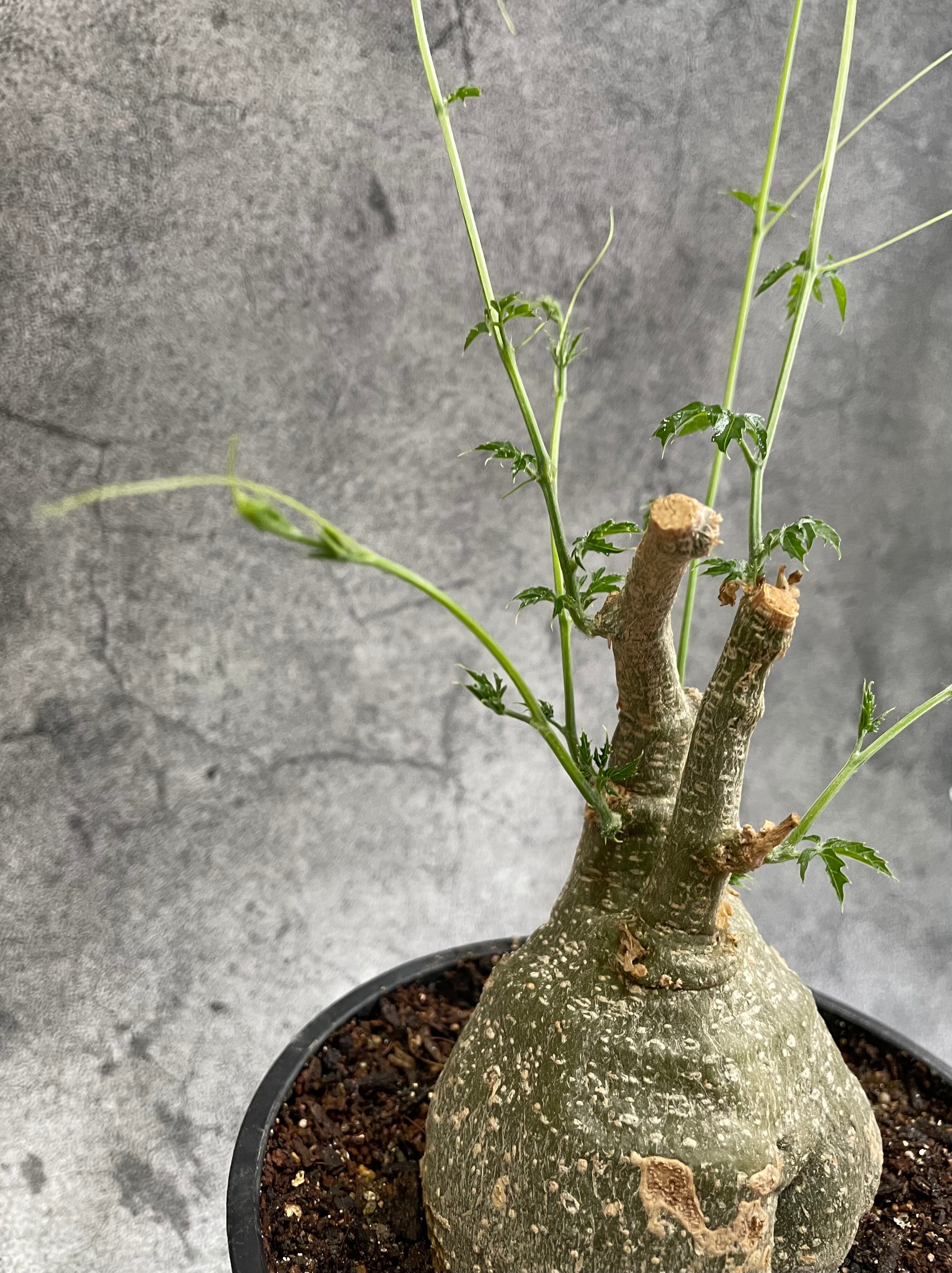 塊根はオリーブグリーンから薄いカーキ色をしており最大で300㎜ほどの直径にまで成長する株もあります。