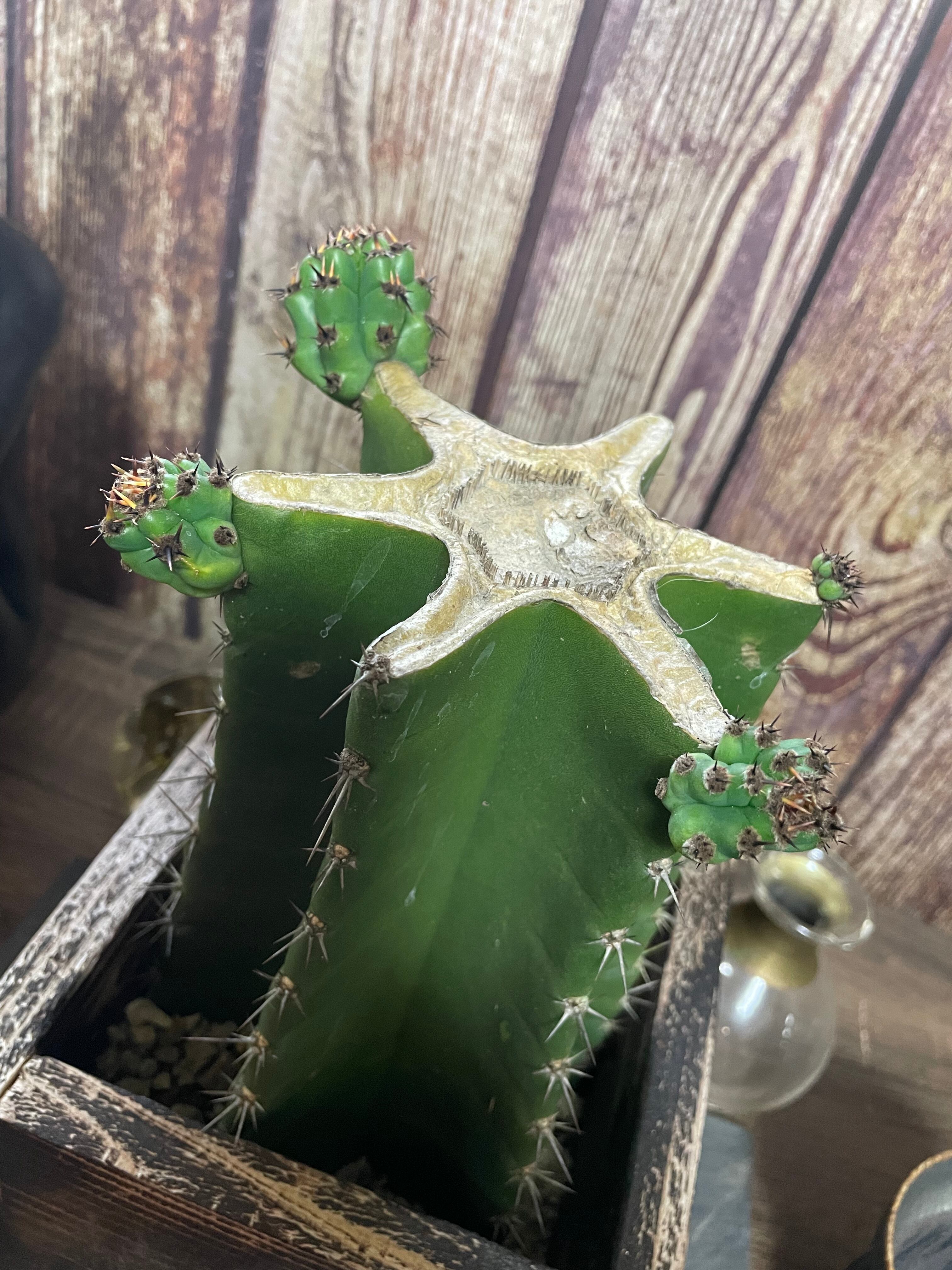 【柱サボテン】木箱の鉢・太めの株に仔株4つ
